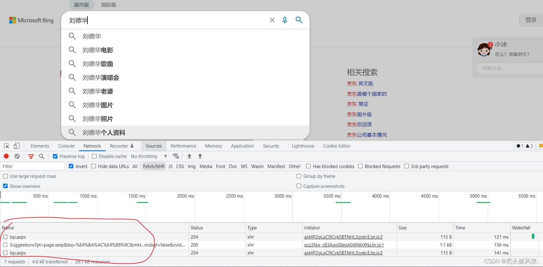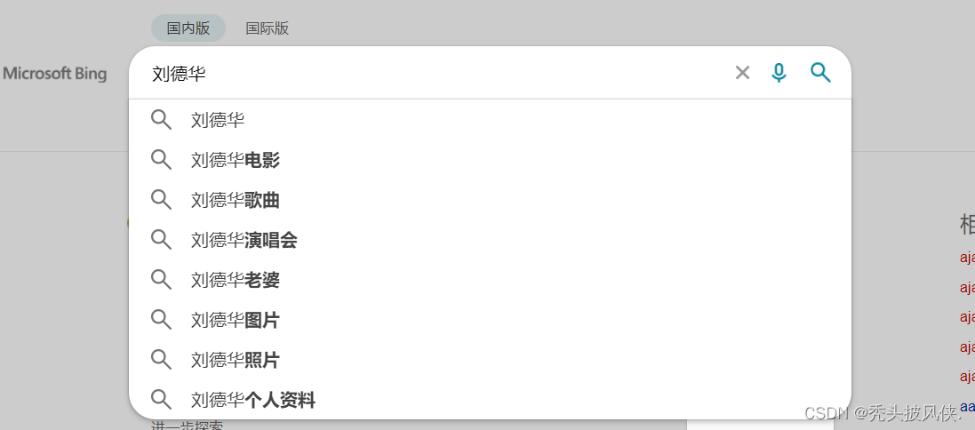 上面是一個搜索框,我們進行搜索的時候,下面就自動進行提示,這就是ajax的典型應用案例,我們只要輸入字符,那么就會發(fā)送ajax請求,服務器返回數據,頁面再進行展示。
