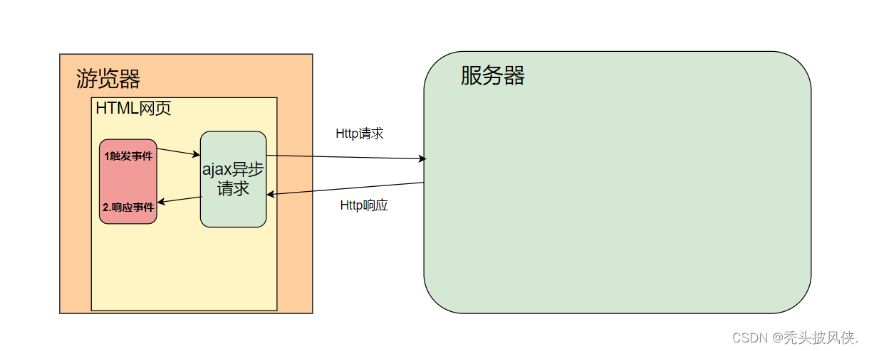 ajax原理分析我們自己定義觸發(fā)事件,在觸發(fā)事件里面編寫ajax代碼當事件觸發(fā)時,游覽器將會發(fā)送ajax異步請求,本質還是http請求服務器返回數據,我們通過回調函數來對返回數據進行處理將數據展示到頁面上,實現局部更新