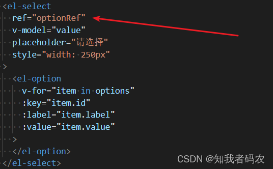 在進(jìn)行el-select渲染時(shí),給el-select添加一個(gè)ref,用于獲取值