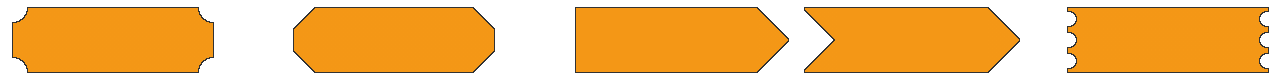 .arrow-button {position: relative;width: 180px;height: 64px;background: #f49714;&::after {content: "";position: absolute;width: 32px;height: 64px;top: 0;right: -32px;background:linear-gradient(-45deg, transparent 0, transparent 22px, #f49714 22px, #f49714 100%),linear-gradient(-135deg, transparent 0, transparent 22px, #f49714 22px, #f49714 100%);background-size: 32px 32px;background-repeat: no-repeat;background-position: 0 bottom, 0 top;}}
