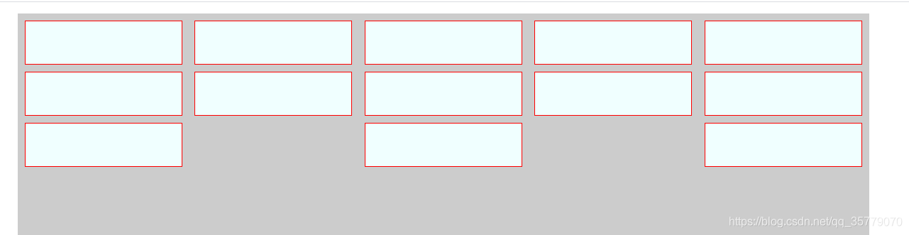 <!DOCTYPE html><html> <head> <meta charset="utf-8"> <title></title> </head> <style type="text/css"> li { list-style: none; } .List { width: 100%; box-sizing: border-box; display: flex; justify-content: space-between; flex-wrap: wrap; padding: 10px; } .List:after{ content: ""; flex: auto; } .item { /* 寬度是固定好的 */ width: 220px; height: 60px; background-color: azure; margin-bottom: 10px; border: 1px solid red; /*這個數值需要自己去調*/ margin-right: 17px; } .item:nth-child(5n){ /* 盡量讓item在list中居中,兩邊都沒有margin */ margin-right: 0; } </style> <body> <div id=""> <ul> <li></li> <li></li> <li></li> <li></li> <li></li> <li></li> <li></li> <li></li> <li></li> <li></li> <li></li> <li></li> <li></li> </ul> </div> </body></html>重要代碼:要加after以及每個item的margin-right
