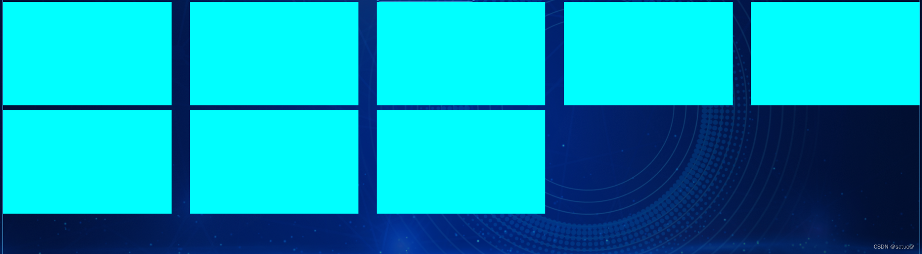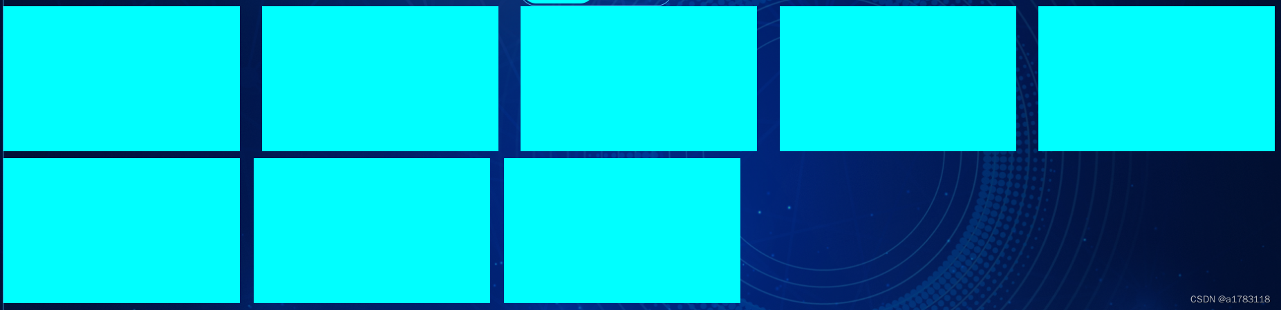 .videoMain{display: flex; flex-wrap: wrap;justify-content: space-between;align-content: flex-start;height: 100%;overflow-y: auto;.video{ width: 342px; height: 210px; margin-bottom:10px; background-color: cyan;} }當我使用 justify-content:space-between 或者 space-around 的時候頁面效果是這樣的