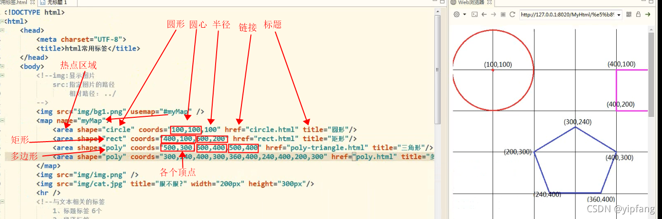圖片標(biāo)簽的熱點(diǎn)區(qū)域<map name="?" /> <atea 形狀 范圍 鏈接 標(biāo)題 / >