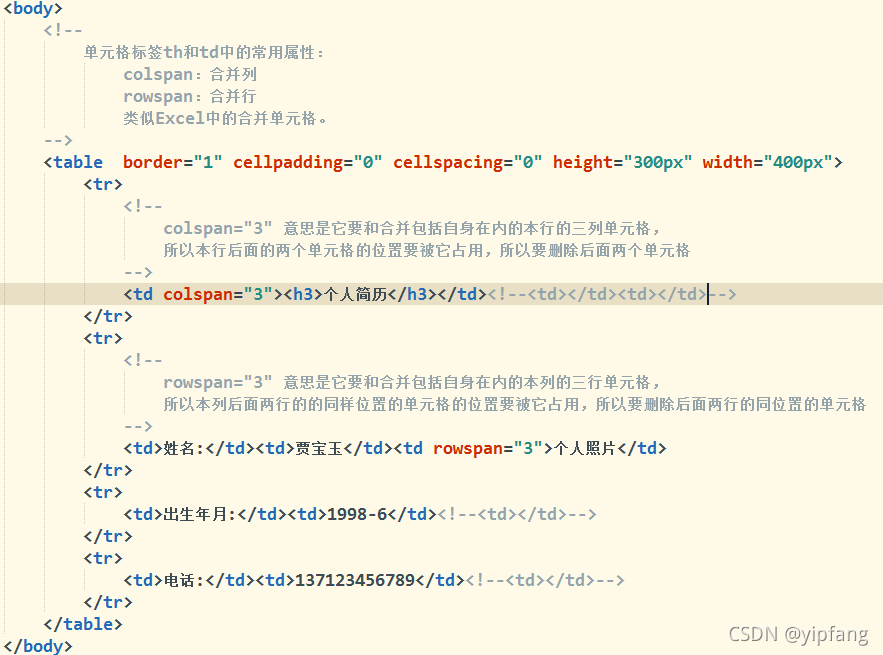 屬性 colspan="列數(shù)" rowspan="行數(shù)" 然后把被占的格刪掉