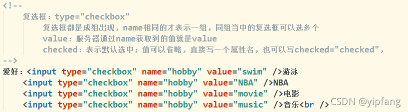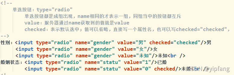 value: 表單項(xiàng)元素的值,服務(wù)器獲取數(shù)據(jù)通過name 獲取到的就是 value