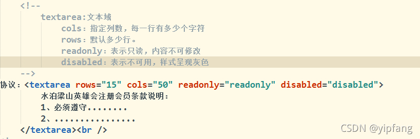 disabled: 表示禁用,該元素不能改而且背景是灰色