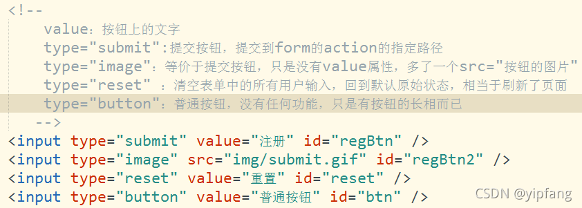 提交按鈕、圖片按鈕、重置按鈕、普通按鈕