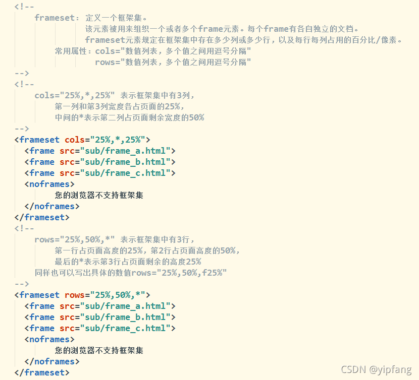 框架集:HTML5已經(jīng)取消
