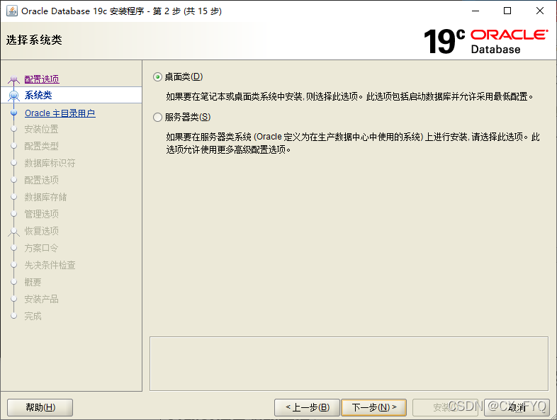 - 3、根據(jù)需要選擇需要安裝的類型,我是安裝桌面的,可以減少Oracle數(shù)據(jù)庫運(yùn)行的系統(tǒng)資源的開銷
