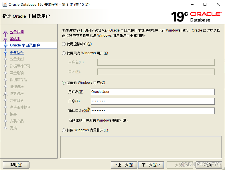4、我是創(chuàng)建新的Oracle非Windows管理員賬戶