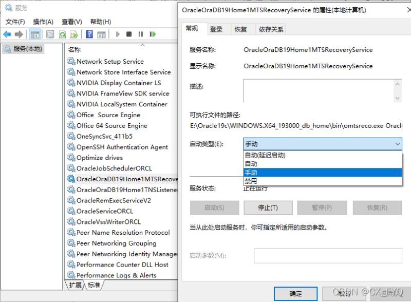 2. 回車找到Oracle相關(guān)服務(wù)項(xiàng)、右鍵屬性、把啟動類型改為手動即可
