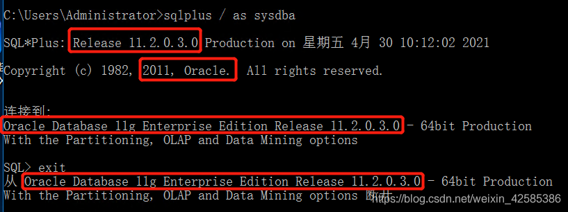 通過sysdba身份可以登錄Oracle數據庫,可以查看自己的Oracle數據庫版本和數據庫默認密碼保質期的配置: