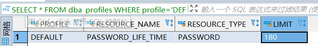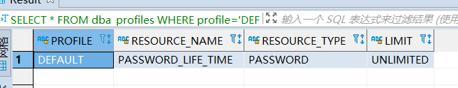 修改為不限期:UNLIMITED,這樣以后就不會再出現這個密碼過期的問題了,此處需結合項目需求,有些公司是建議定期更換密碼的,因此不會設置為UNLIMITED;