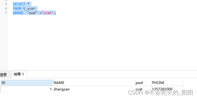 WHERE “pwd” =‘ccat’;