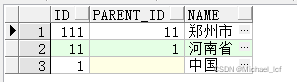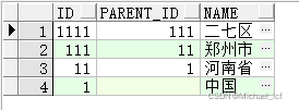 select id, parent_id, name, sys_connect_by_path(name, "->") namepath, levelfrom area_teststart with name = "平頂山市"connect by prior id = parent_id