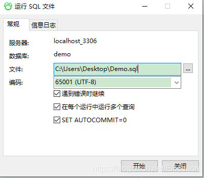 PS:不用點保存,導入后直接×掉即可,保存會修改sql文件本身;