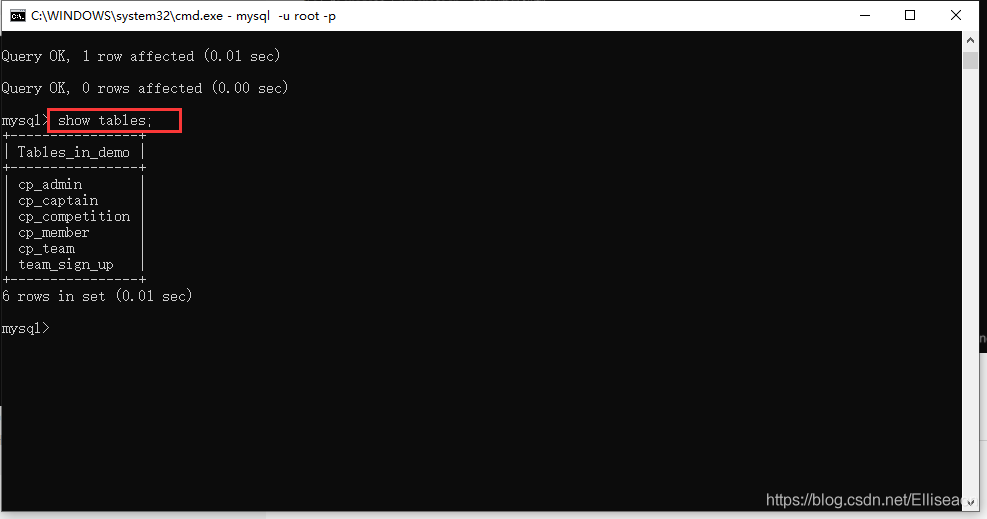 6.查看表show tables;