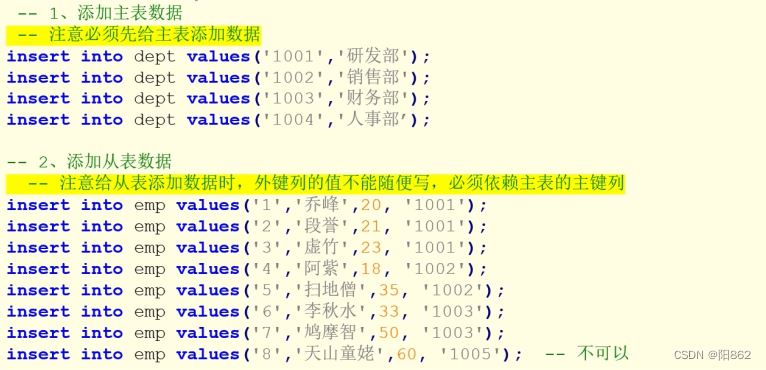 外鍵約束也可以在修改表時(shí)添加,但是添加外鍵約束的前提是:從表中外鍵列中的數(shù)據(jù)必須與主表中主鍵列中的數(shù)據(jù)一致或者是沒有數(shù)據(jù)。