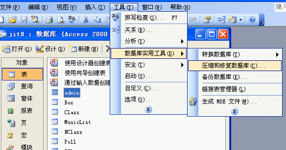 4。執行上面的“工具” --- “數據庫實用工具”---“壓縮和修復數據庫” 。如圖: