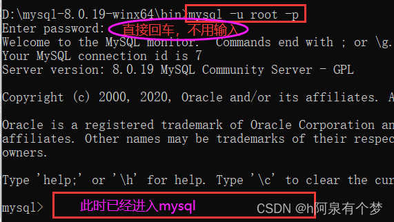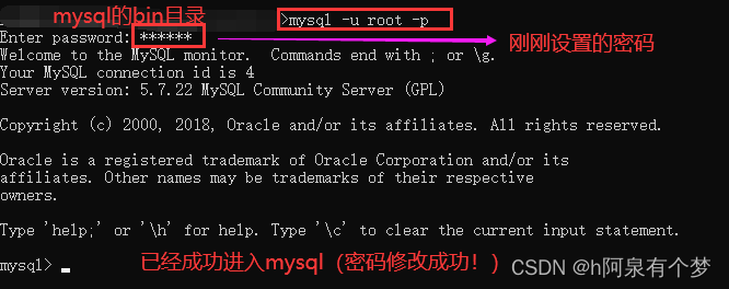執(zhí)行語句mysql -uroot -p,輸入剛剛設(shè)置的密碼即可登錄成功