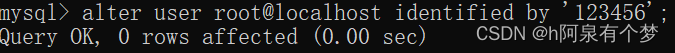 執(zhí)行alter user root@localhost identified by '123456';語句,把密碼修改為123456(這里填自己想要的密碼)