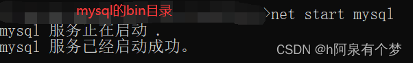 ③再次執(zhí)行net start mysql命令啟動服務(wù),發(fā)現(xiàn)啟動成功!