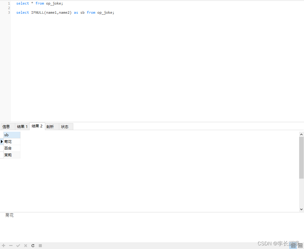 其中:如果 v1 不為 NULL,則 IFNULL 函數返回 v1; 否則返回 v2 的結果。