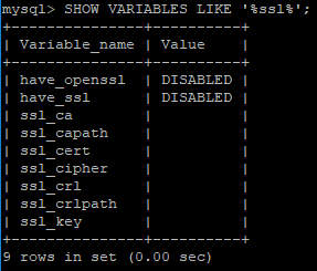 看到have_ssl的值為DISABLED,表示已關閉SSL。