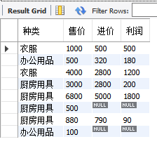 drop view profit;create view profit (種類,售價, 進價,利潤)As select product_type,sale_price,purchase_price,sale_price - purchase_price as profitfrom productgroup by product_type;select * from profit;