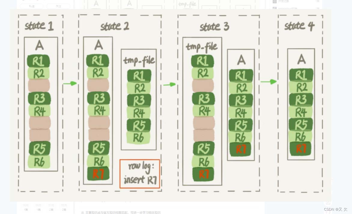 - 3.生成臨時文件的過程中,將所有對A的操作記錄在一個日志文件(rowlog)中,對應(yīng)的是圖 中state2的狀態(tài);