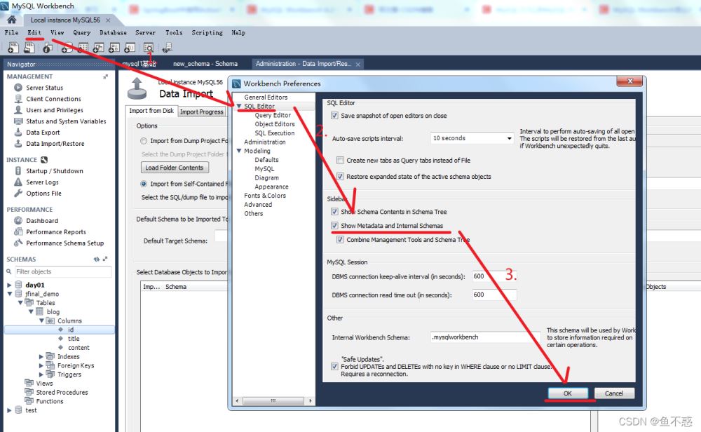 開發中會用到information_schema數據庫和mysql數據庫,默認SCHEMAS欄是沒有顯示的,需要設置讓其顯示。