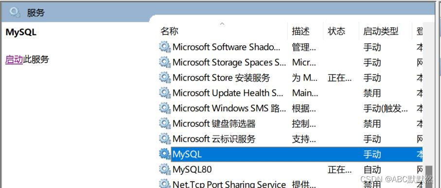 3、在服務里面找到Mysql,點擊“啟動”,讓它運行起來