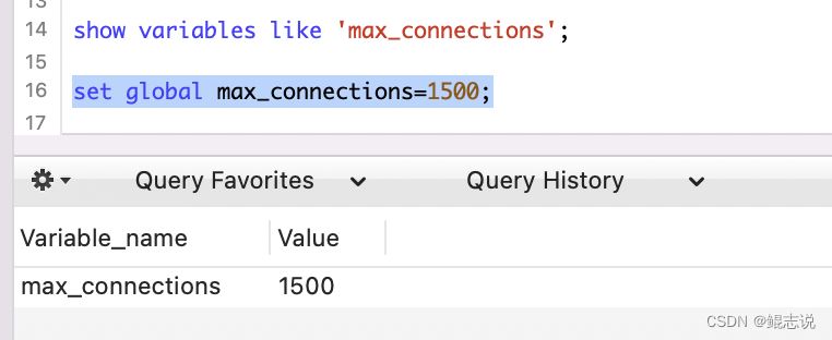 # 修改my.cnf文件,在文件中加入如下屬性max_connections=1500# 然后重啟mysql服務(wù)$ service mysqld restart