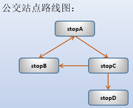 計(jì)算以stopA為起點(diǎn),可以到達(dá)哪些站點(diǎn),并給出路線圖。例如:stopA-->stopC-->stopD。