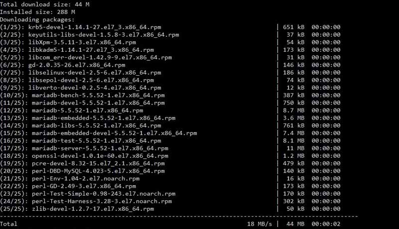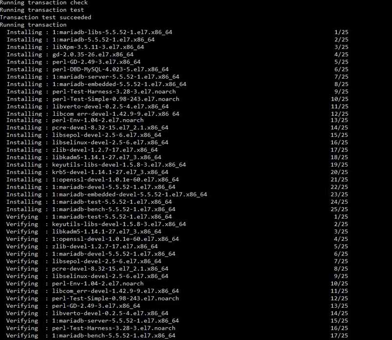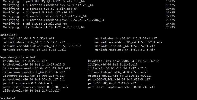 執(zhí)行命令:yum -y install mariadb*