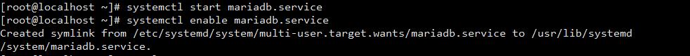 執(zhí)行命令:systemctl start mariadb.service和systemctl enable mariadb.service
