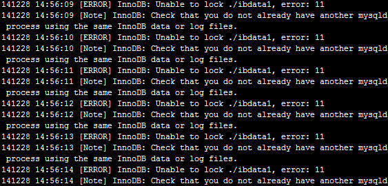 InnoDB: Unable to lock ./ibdata1, error: 11