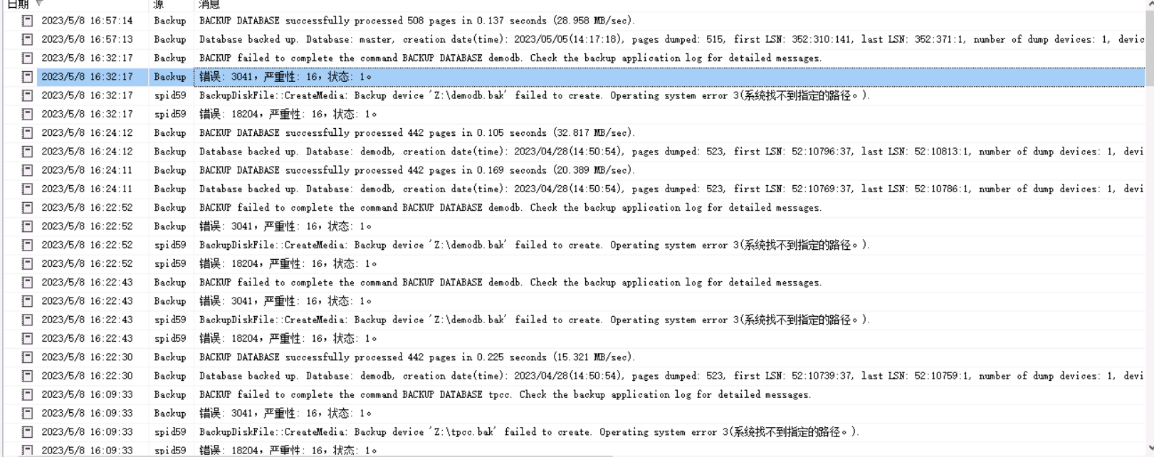 在SQL Server的官方文檔里面可以看到備份和還原的表,但是這些表里面只能找到備份成功的相關信息,無法找到備份失敗的記錄,比如msdb.dbo.backupset。對于一些監控系統未監控作業的情況下,想要監控數據庫備份任務執行失敗而觸發告警規則,有些麻煩。