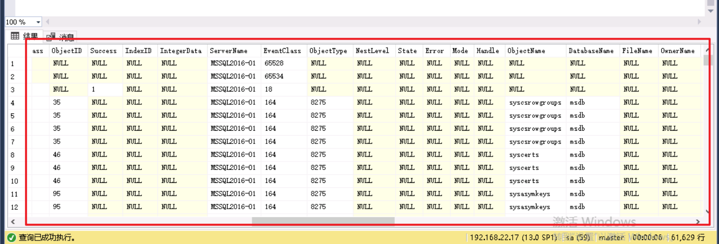 我們可以借助sys.traces定位到errorlog的trace文件路徑,然后通過再通過fn_trace_gettable將errlog的trace文件轉換為普通的表來查詢即可。