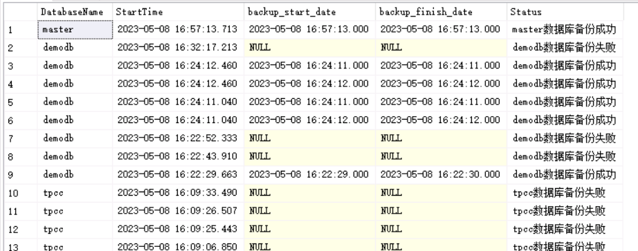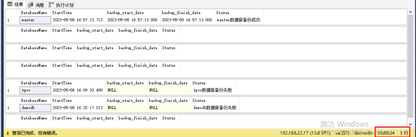 3 結合備份表backupset,判斷備份狀態篩選出所有數據庫的備份任務執行情況