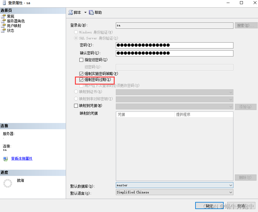 到此這篇關(guān)于SQLServer數(shù)據(jù)庫密碼短時間強制過期的解決的文章就介紹到這了,更多相關(guān)SQLServer密碼強制過期內(nèi)容請搜索以前的文章或繼續(xù)瀏覽下面的相關(guān)文章希望大家以后多多支持!