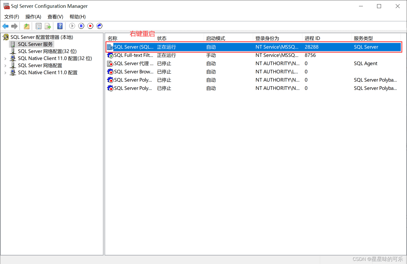 將IP1和IP10和IPALL的TCP端口都設置為1433,IP地址設置為127.0.0.1即可。在設置完成之后一定要重啟sql sever服務,如下圖: