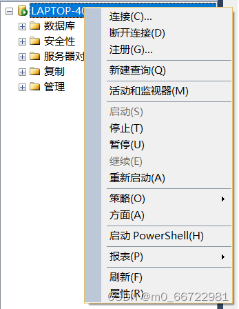 找到對象資源管理器的第一個,單擊鼠標右鍵后出現以下頁面: