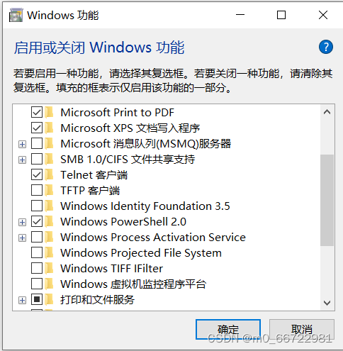 將Telnet客戶端對號選中,點擊確定,會經過大概1分鐘左右的等待頁面