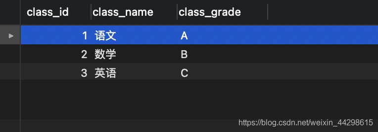 右表中是沒有數(shù)據(jù)的class_name為體育的,所以右表為空,顯示左表的全部數(shù)據(jù),右表對(duì)應(yīng)的字段為空: