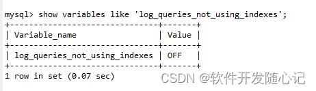 查詢未使用索引是否開(kāi)啟記錄慢查詢?nèi)罩荆?show variables like ‘log_queries_not_using_indexes’;