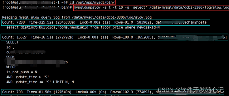 sql mysqldumpslow -s t -t 10 -g "select" /data/mysql/data/dcbi-3306/log/slow.log