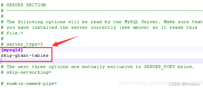 1、找到mysql的my.ini文件,在mysqld關鍵字下面添加skip-grant-tables,如下圖所示: