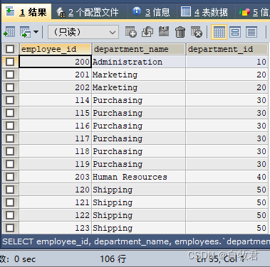 把第 1 行代碼中的 department_id 改成 employees.department_id ,說明字段“部門編號” department_id 是來自員工表 employees 中的。即可正確查詢,希望本文對你有幫助。