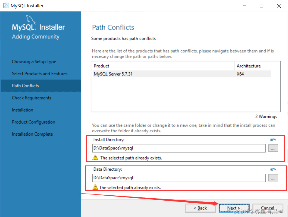 確認一下安裝路徑和數據存放路徑對不對,沒有問題的話就直接點擊Next